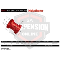 Nolathane camber kits provide the ability to fine tune camber settings for optimum tyre contFits Act resulting in improfits ved vehicle handling and increased tyre life. The kit is supplied with dual offset Nolathane's superior formulation bushings with core characteristics ensuring superior elasticity, memory and outright durability which help maintain preferred alignment settings as well as providing enhanced steering response.